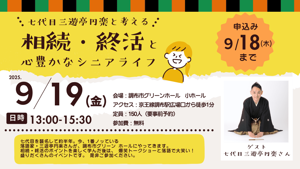 相続をテーマにした古典落語などを予定!笑いは健康のもと!約40分間の「独演会」をお楽しみください。